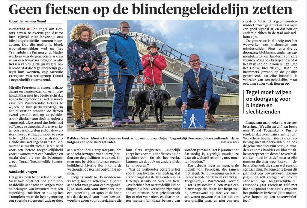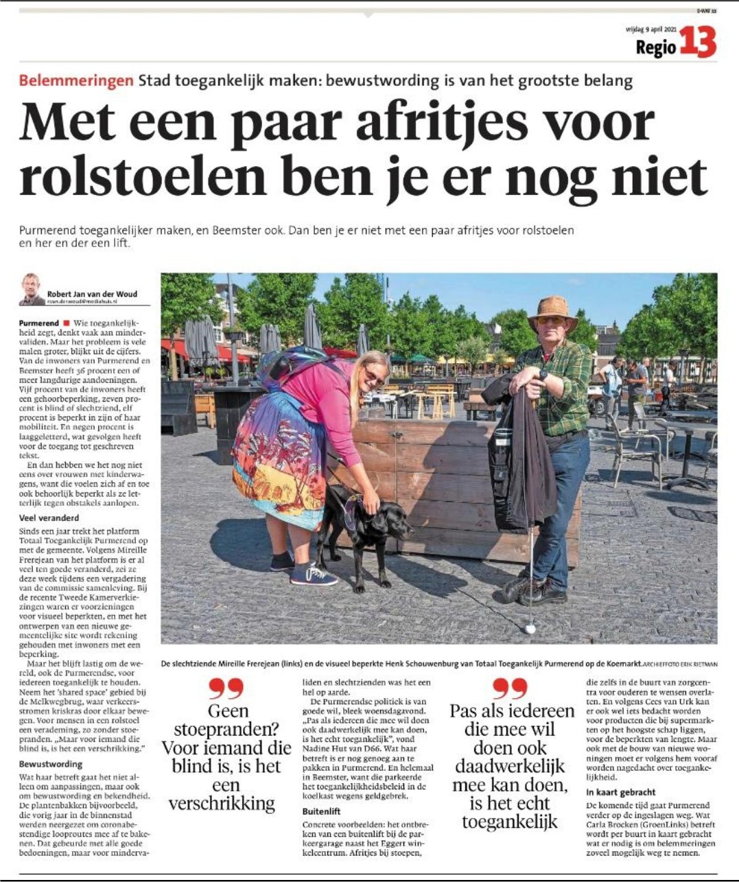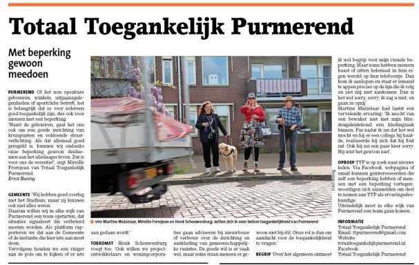 Wij zetten ons in voor een toegankelijk Purmerend door te overleggen met ambtenaren en adviezen aan gemeente en bedrijven.